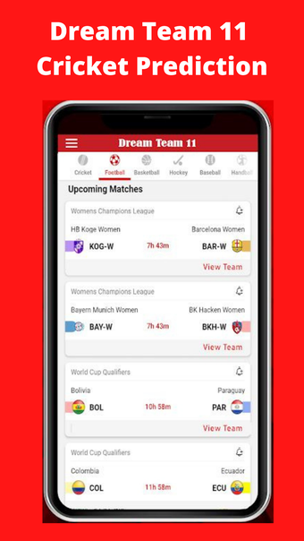 Это приложение не связано с официальной командой Dream Team 11 и не поддерживает это приложение. в любом случае. Это совершенно оригинальное приложение, которое предоставляет оригинальные советы для матчей низшей лиги.